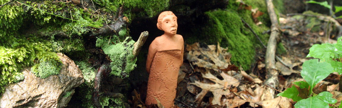 | For the Goddess Project I created 52 goddesses made of terra cotta and bisque fired. Each Monday a goddess was placed in the world in a different location. I allowed myself to be drawn to the locations rather than planning them out in advance, and spent time with the goddess in each place until words came to me. I wrote the words, placed them within the goddess, and photographed her in place. Each goddess was launched into the world with mindfulness and a wish for our world and the living creatures that inhabit it. The Goddess Project is documented in a book available at booksmart.com and online at timegoddessproject.blogspot.com. |